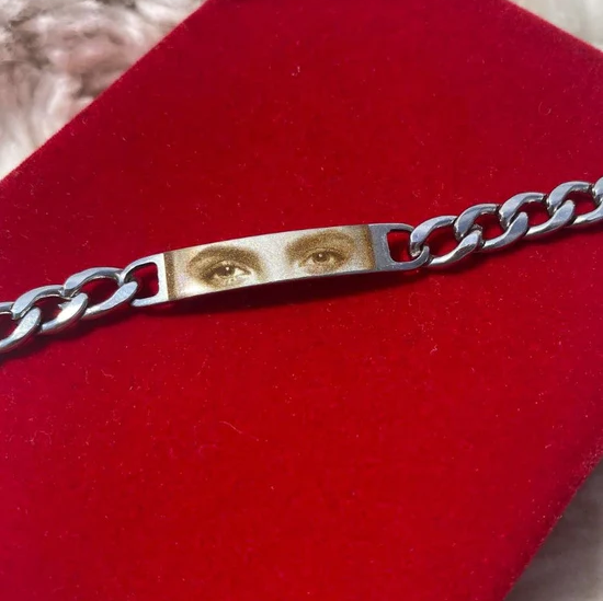 Göndermiş olduğunuz görsel, özel lazer baskı ile gümüş kaplama bilekliğinize basılır ve sizlere ulaştırılır.