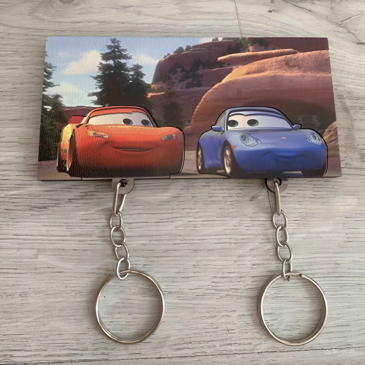 Hem tasarımıyla göz alıcı hem de fonksiyonel bir aksesuar. Anahtarlarınızı düzenli tutarken, her bakışta McQueen ve Sally’nin hikayesine adım atın.