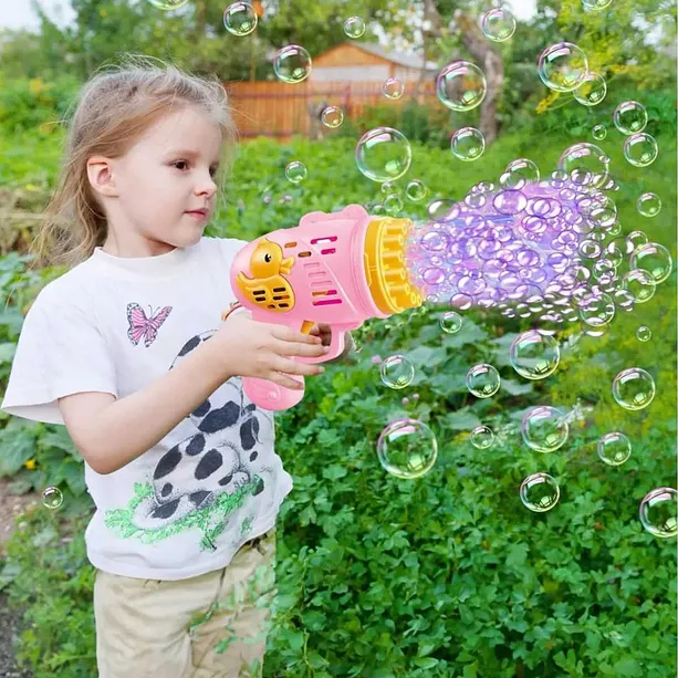 Ördek Pilli Köpük Tabancası ile sıradan yaz günleri artık çok daha eğlenceli! 23 deliğinden köpük fırtınası estiren bu oyuncak, pilli mekanizması sayesinde her ortamda kesintisiz oyun keyfi ve neşe dolu anlar sunar.